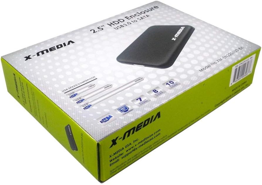 - X-MEDIA 2.5-Inch Tool-Free USB 3.0 SATA Aluminum Hard Disk Drive HDD External Enclosure Case XM-EN2251U3-BK
